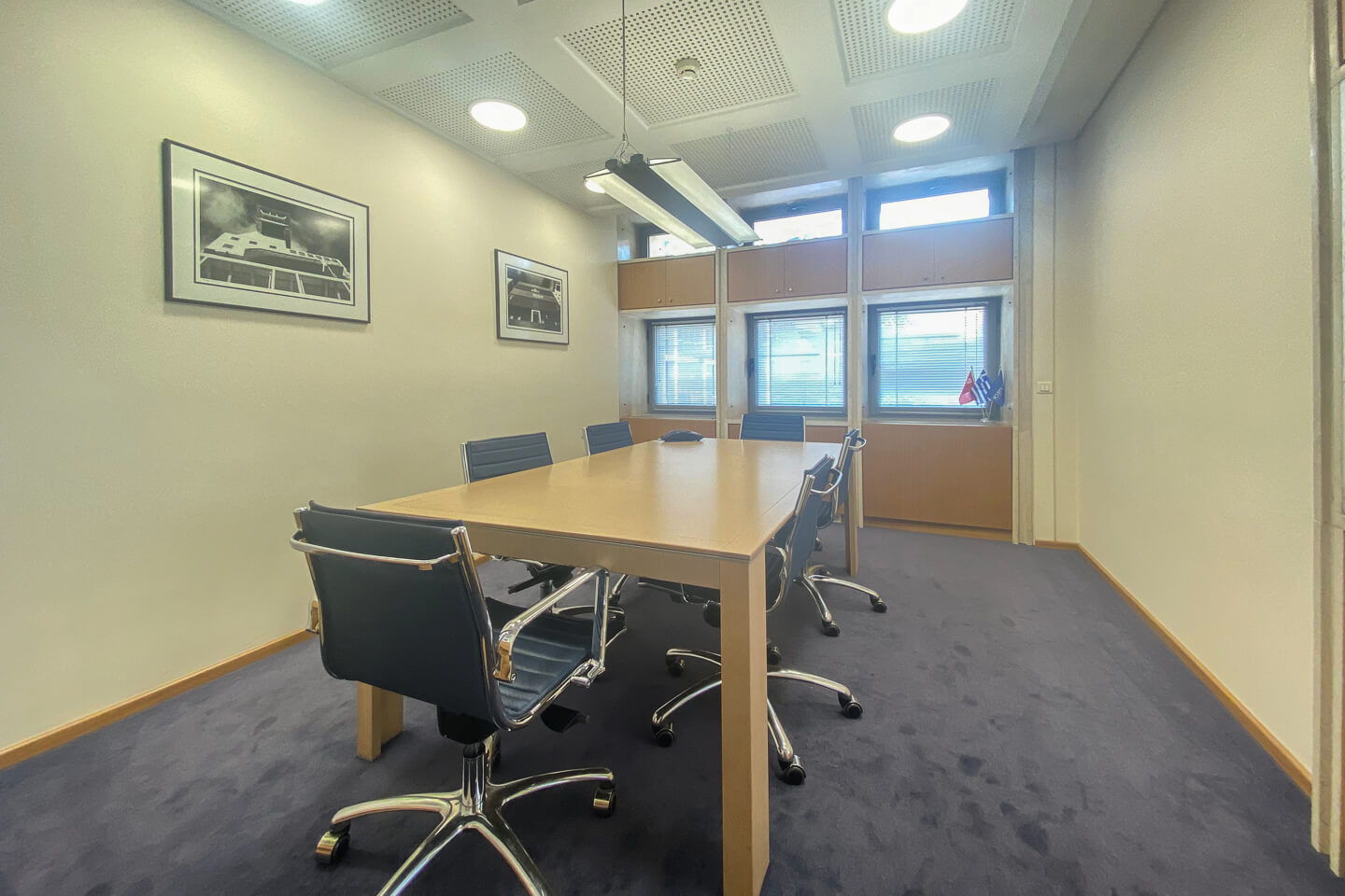 More specifically, it is a luxury building with wooden and carpeted offices, while the premises include a reception, computer room, management offices, accounting office, 2 meeting rooms, kitchenette and WC. The false ceiling is made of perforated plasterboard, there is LED lighting and a marble staircase.