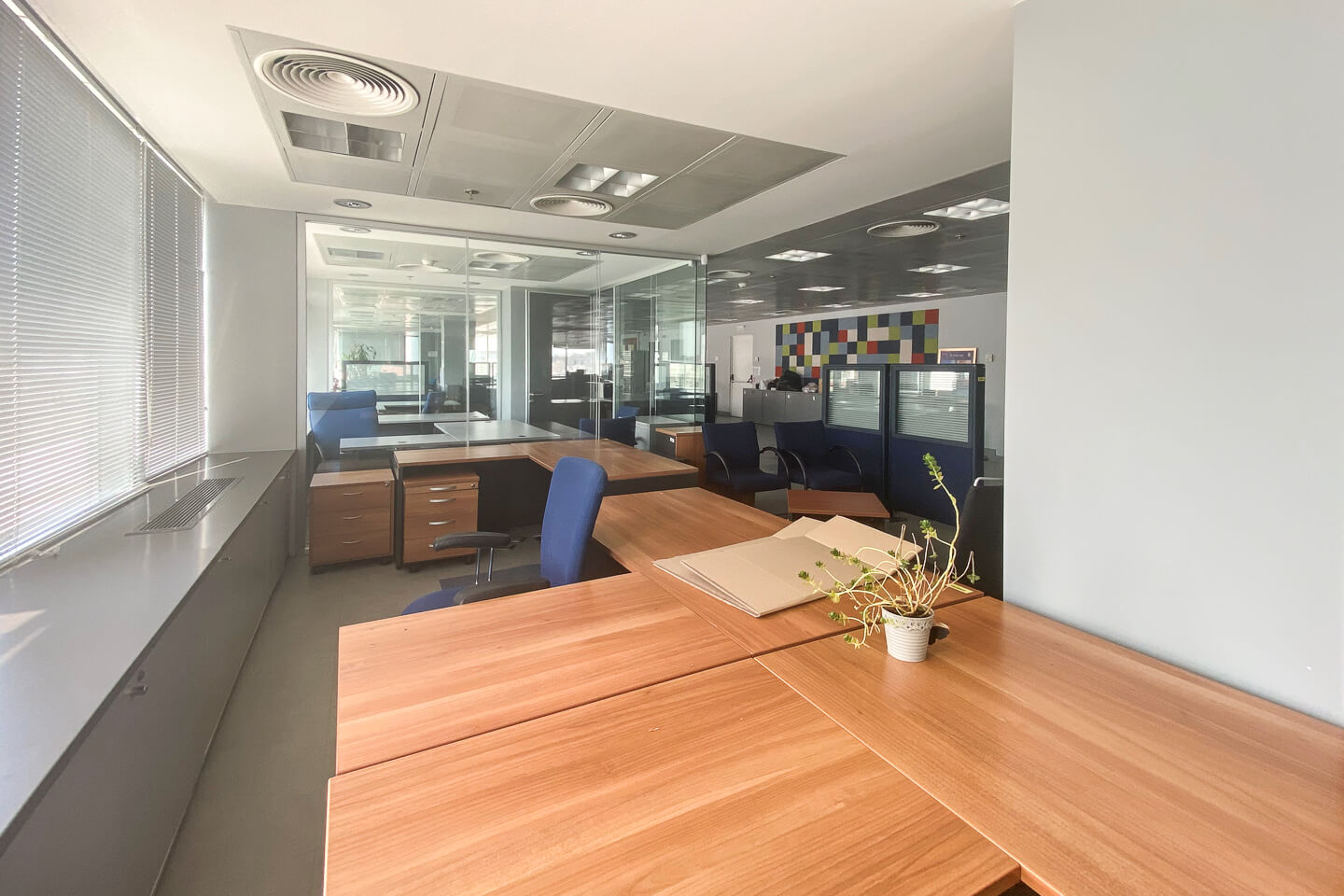 The offices are located on the third floor of the building, which is easily accessible and really close to the metro station. The property is in excellent condition, and it is undoubtedly an open sunny space, that consists of a few offices with movable partitions, a meeting room, server room, kitchen, and 6 WC.