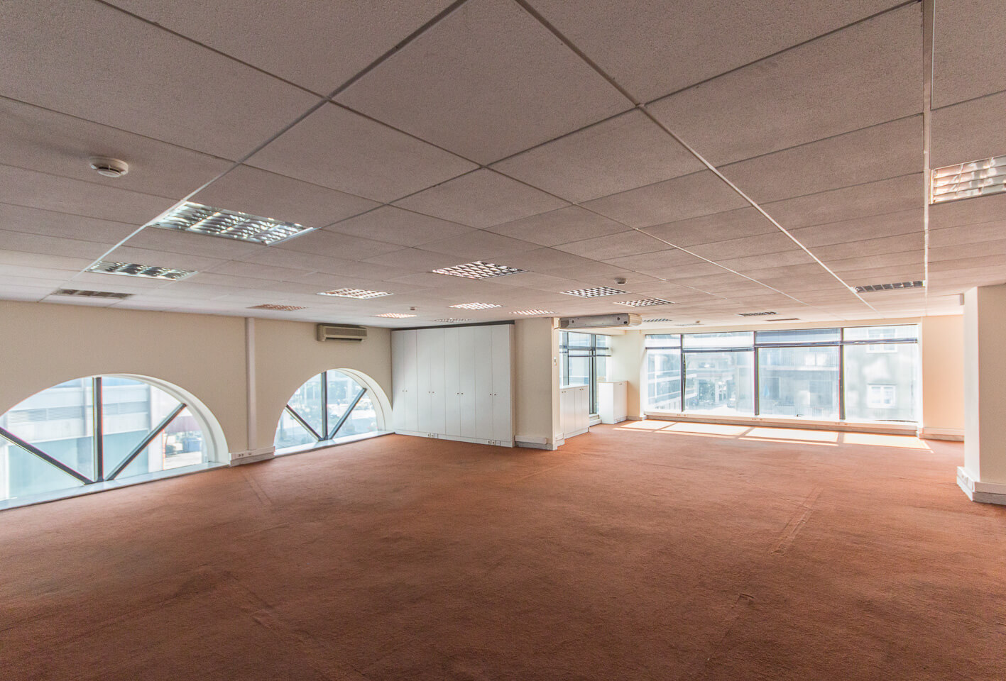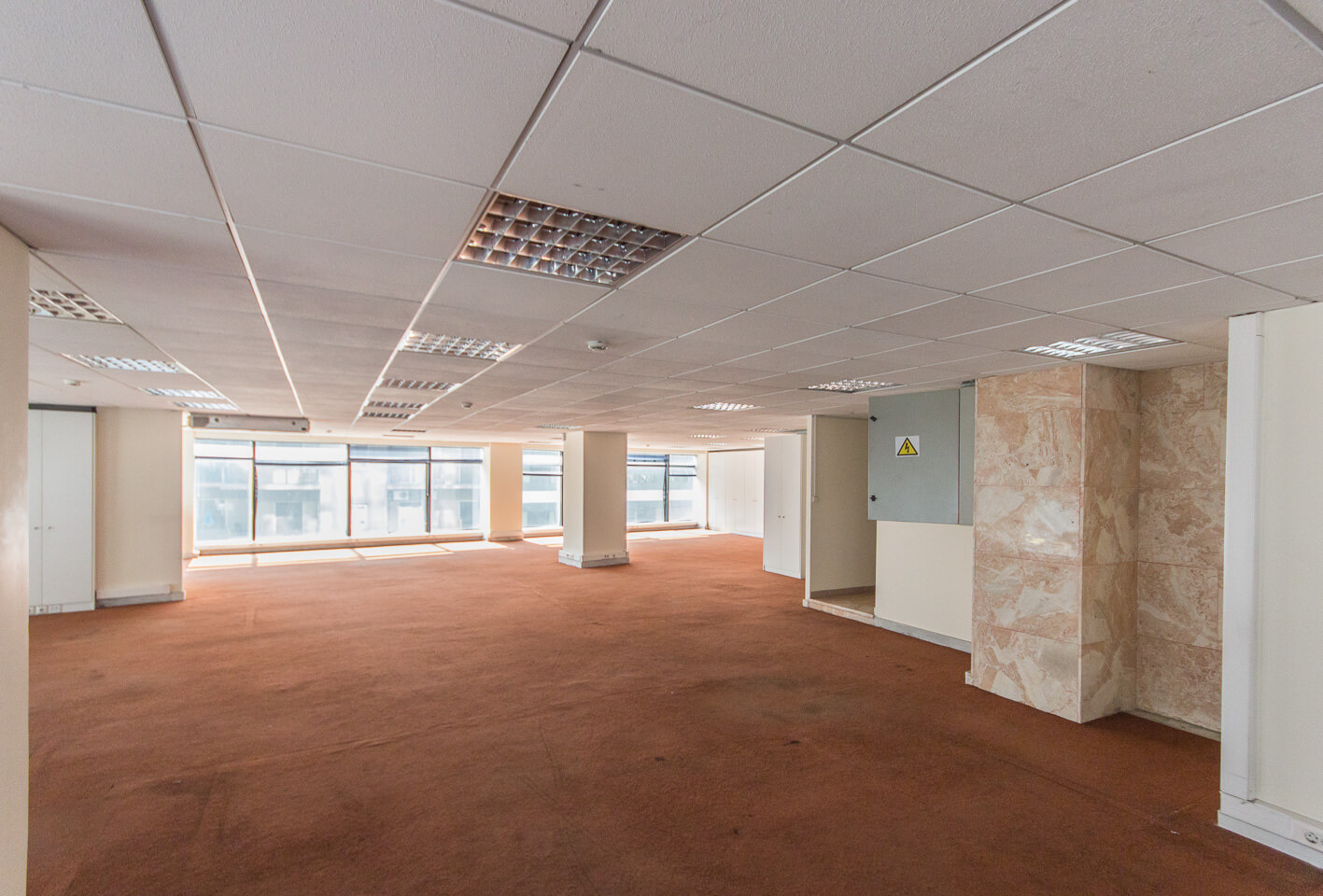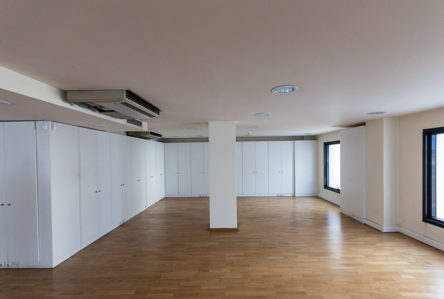 Specifically, the offices are naturally lighted and constructed with modern technical facilities such as kitchenette, men's and women's WC, 2 elevators, structured cabling, autonomous air-conditioning for a cooling system, double glazing, carpeted floors, etc. as well as there is the possibility of parking spaces.