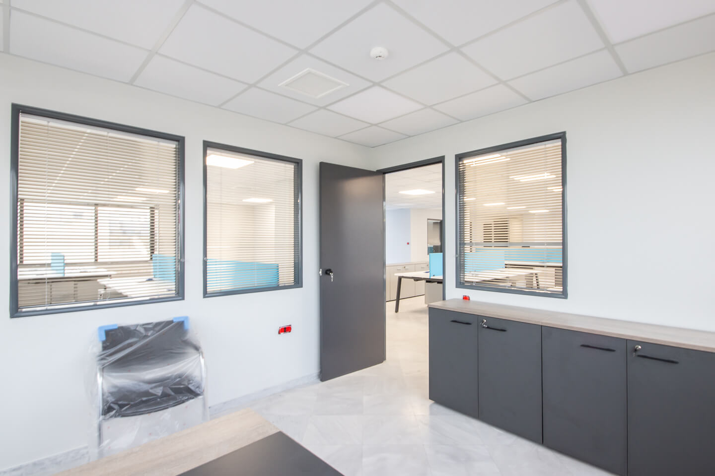 The space is airy and well-designed for demanding business operations. It features marble flooring, mineral fiber false ceilings, a brand-new autonomous air conditioning system, structured cabling, computer network setup, and three-phase power supply. Interior spaces are flexibly arranged with movable glass and drywall partitions, allowing for both open-plan areas and enclosed offices or meeting rooms.