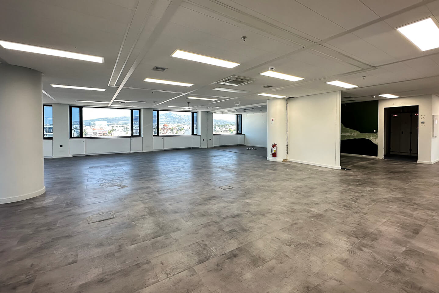 Specifically, it has very bright office spaces with a nice view, reception, meeting room, computer room, warehouse, kitchenette and wc. The suspended ceilings are made of mineral fiber and the floors are laminate.