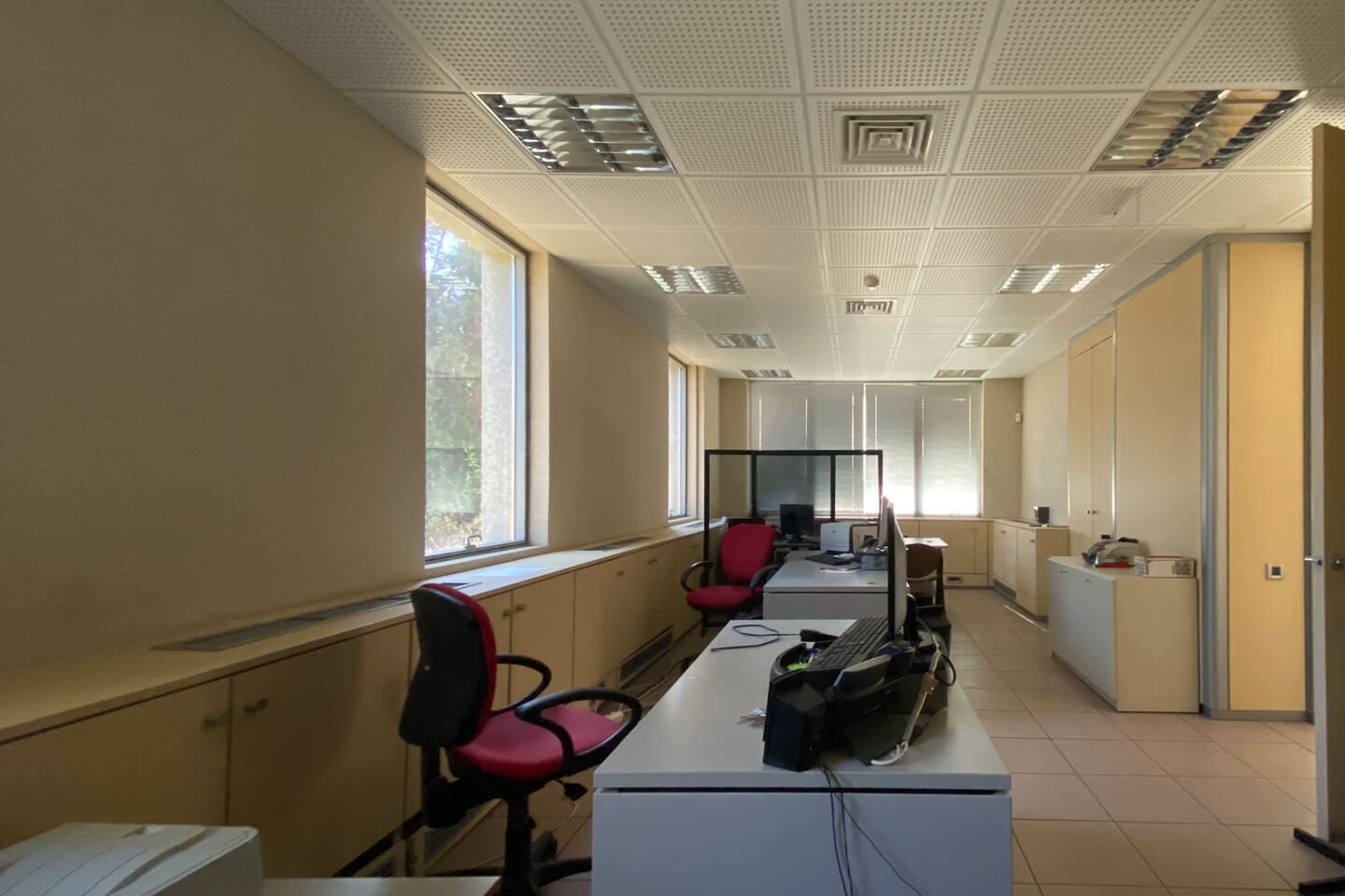 More specifically, the property is in excellent condition and consists of basements and a superstructure of the ground floor and first floor with a total area of 1.341 sq.m. Specifically, the building has structured cabling, an autonomous cooling-heating system, movable partitions, a generator, UPS, cat 6 cabling, false ceiling, 2 elevators, etc. In the basement, there is a server room, storage, restaurant, emergency exit, 4WC and auxiliary spaces.