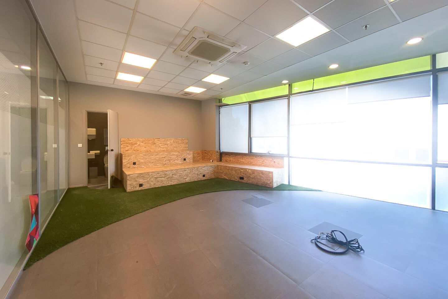 More specifically, it is a professional space of 2 levels with a high ceiling in excellent condition. The property consists of open space offices and meeting rooms with movable partitions, and all spaces are airy, sunny, and bright.