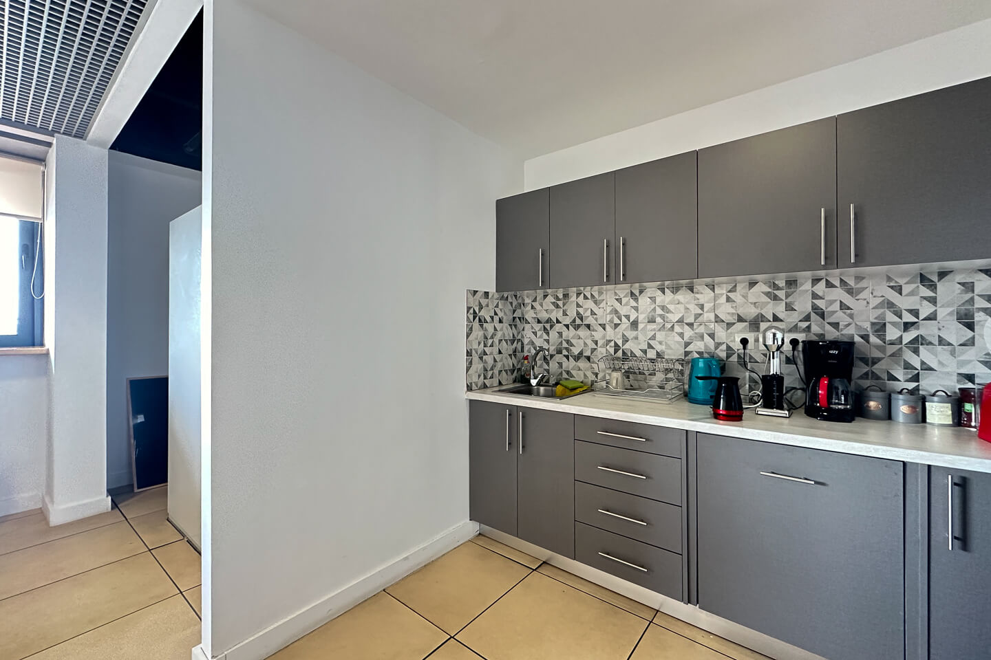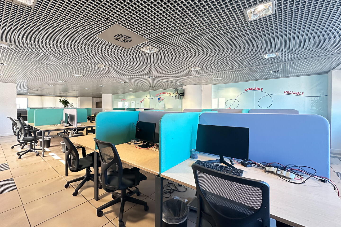 The floors are in good condition, they consist of open space areas with glass mobile partitions and a few closed offices, a kitchenette and WC. The suspended ceilings are of perforated mineral fiber and the floors are raised vinyl