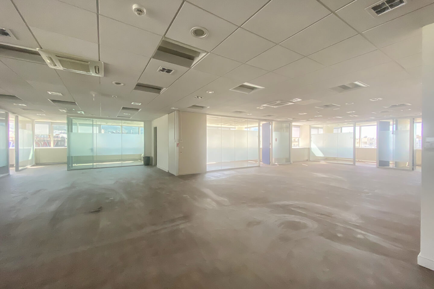 More specifically, it disposes of open and closed bright office spaces, kitchen, WC, terrace and large storage room. The suspended ceiling is made of mineral fiber and the floors made of vinyl.