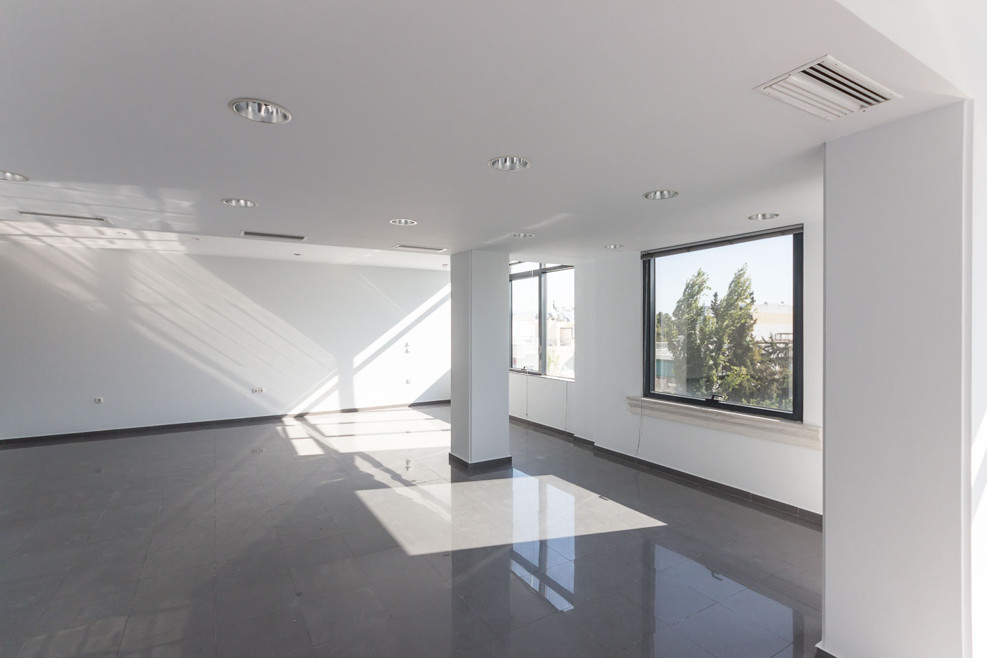 Greece, North Athens-Chalandri, office space 300 sqm for rent. The office space is on the 3rd and 4th floor and consists of 2 large working spaces including all the synchronous and professional supplies such as independent air conditioning of cooling-heating, movable partitions, reception area, meeting and computers room, WC, double glass panels, systems of fire detection and fire safety, access control in each floor and 2 underground parking spaces.