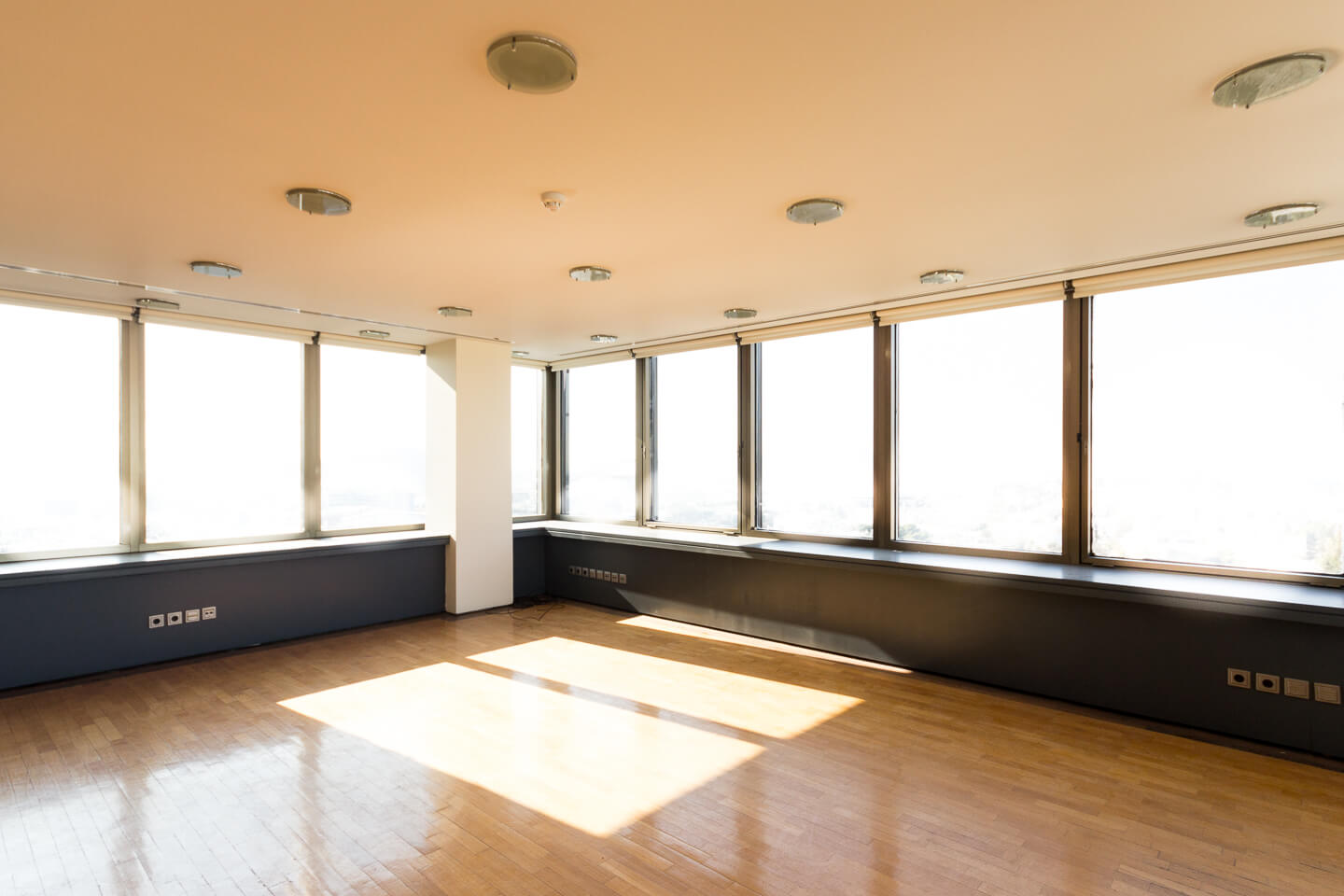 In detail, the space contains ready-made closed and open planned offices, reception area, meeting room, server room, kitchen, 3 WC, parking spaces while also synchronous technical facilities such as structured wiring, autonomous air conditioning system for cooling-heating, glass movable partitions, and wooden flooring.