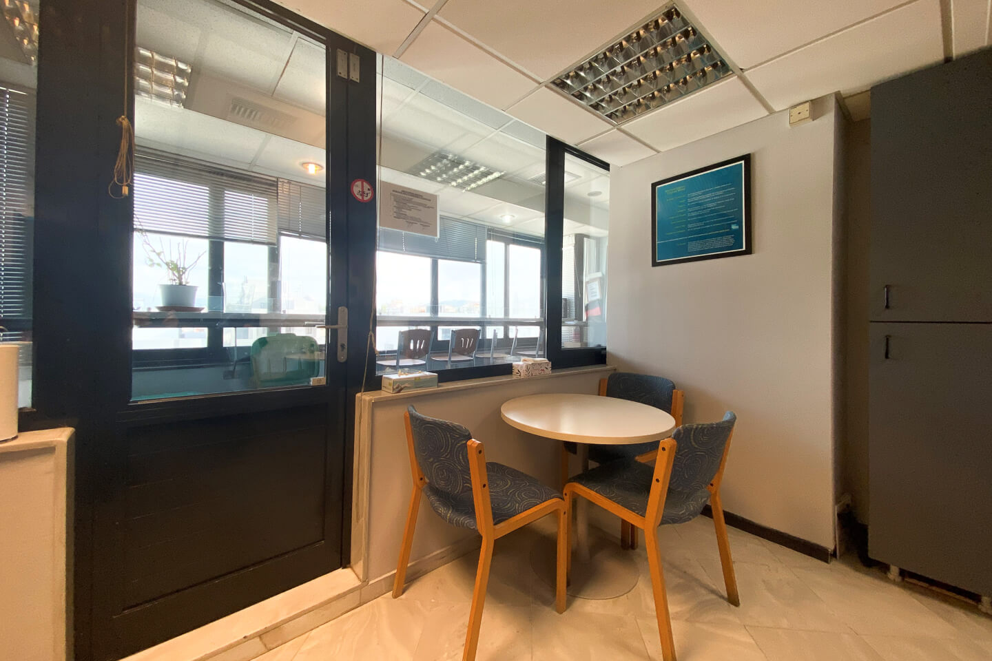 This office is on the 4th floor, in good condition, bright and airy. It has office space, movable glass partitions, kitchen and WC with waterproof false ceiling. In addition, the floors are made of marble and the false ceiling is made of mineral fiber.