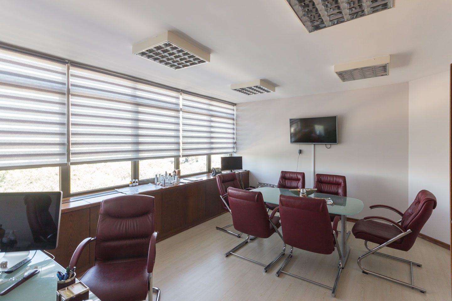 Space consists of ready-made offices with movable partitions, a meeting room, computer room, and reception area. Additionally, the office provides all the synchronous supplies such as an autonomous air conditioner for cooling-heating, double glass panels, structured wiring, laminate floors, ready installation of alarm system, 4 WC, a large kitchen, 6 parking spaces, and a warehouse of 400 sq.m.