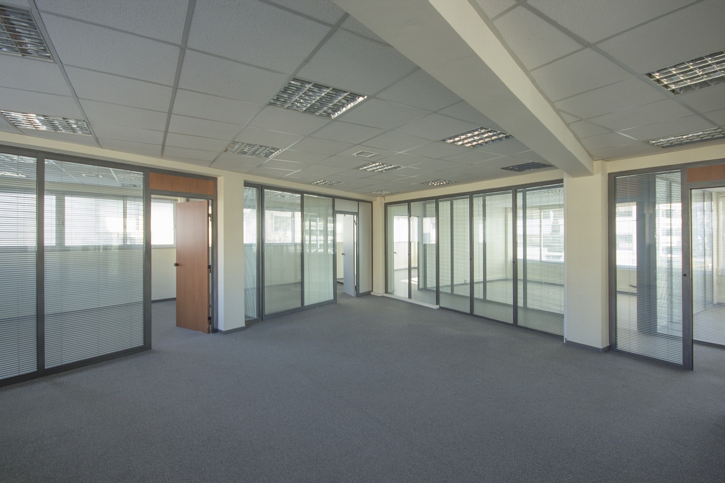 Accurately, this is an office of modern construction comprising of open planned and closed spaces and offering all synchronous professional requirements such as structured wiring, autonomous air conditioning system for cooling-heating, double glazing, movable partitions, computers facilities, etc.