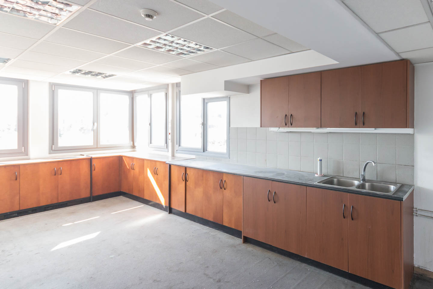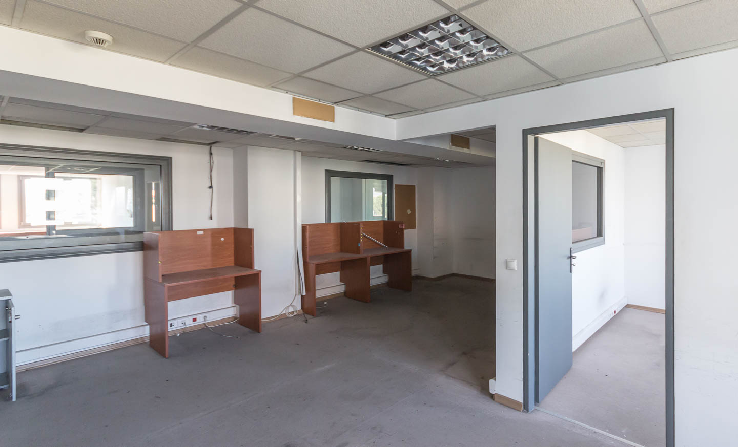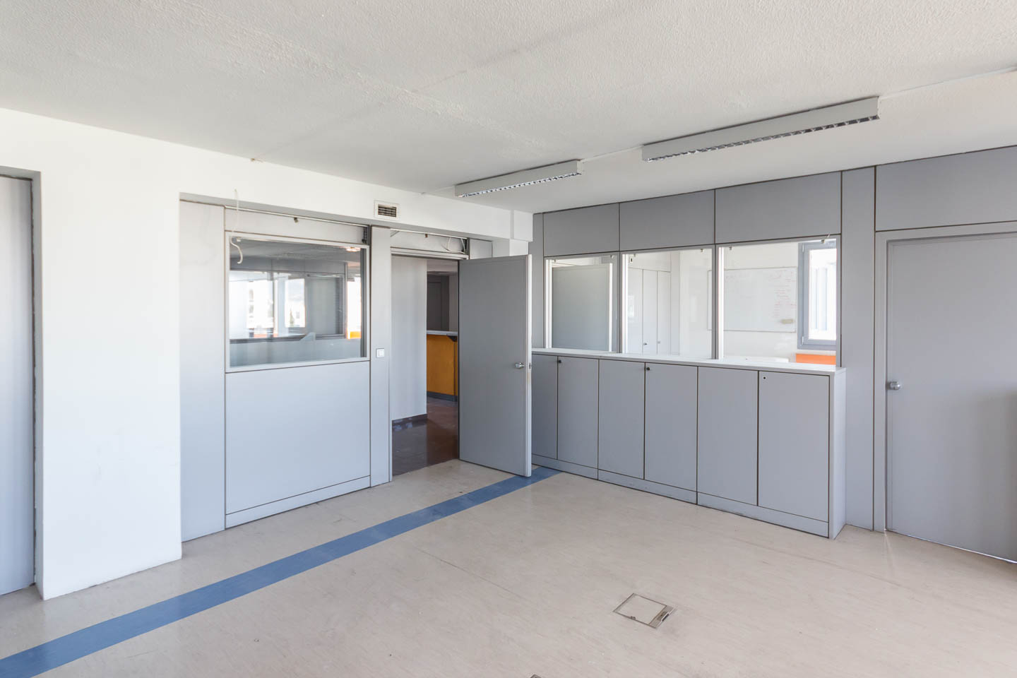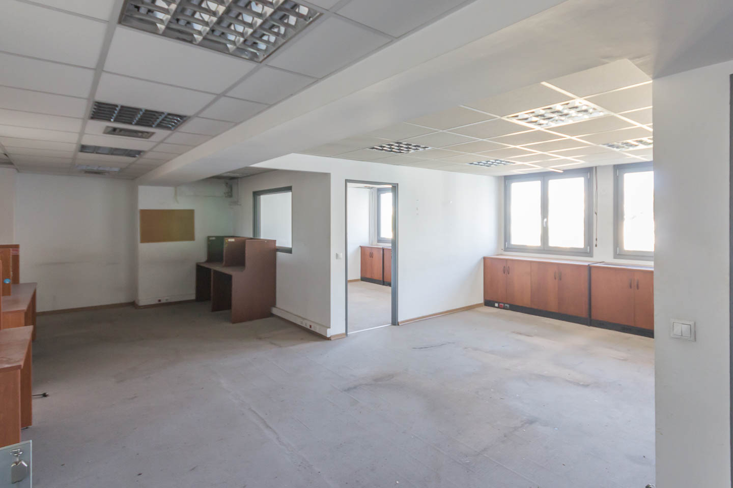 The office's construction is modern featuring all the necessary technical provisions per floor such as structured wiring, autonomous air conditioning–heating, WC, and reception area. There are also mobile partitions in the rooms, parking spaces, and it is bright.