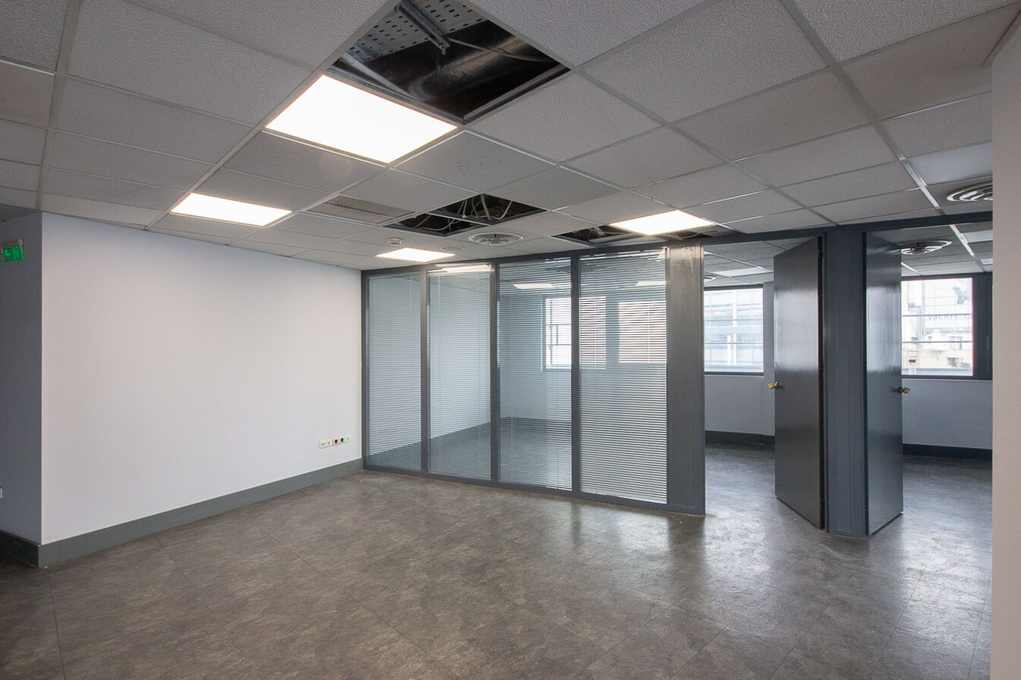 Specifically, these are hot shell office spaces on the 5th floor of a business building. The property has renovated floors and ceilings, led lighting, a new cooling-heating system, double glazing energy windows, a new elevator, structured cabling, a large porch, and more. There are available parking spaces.