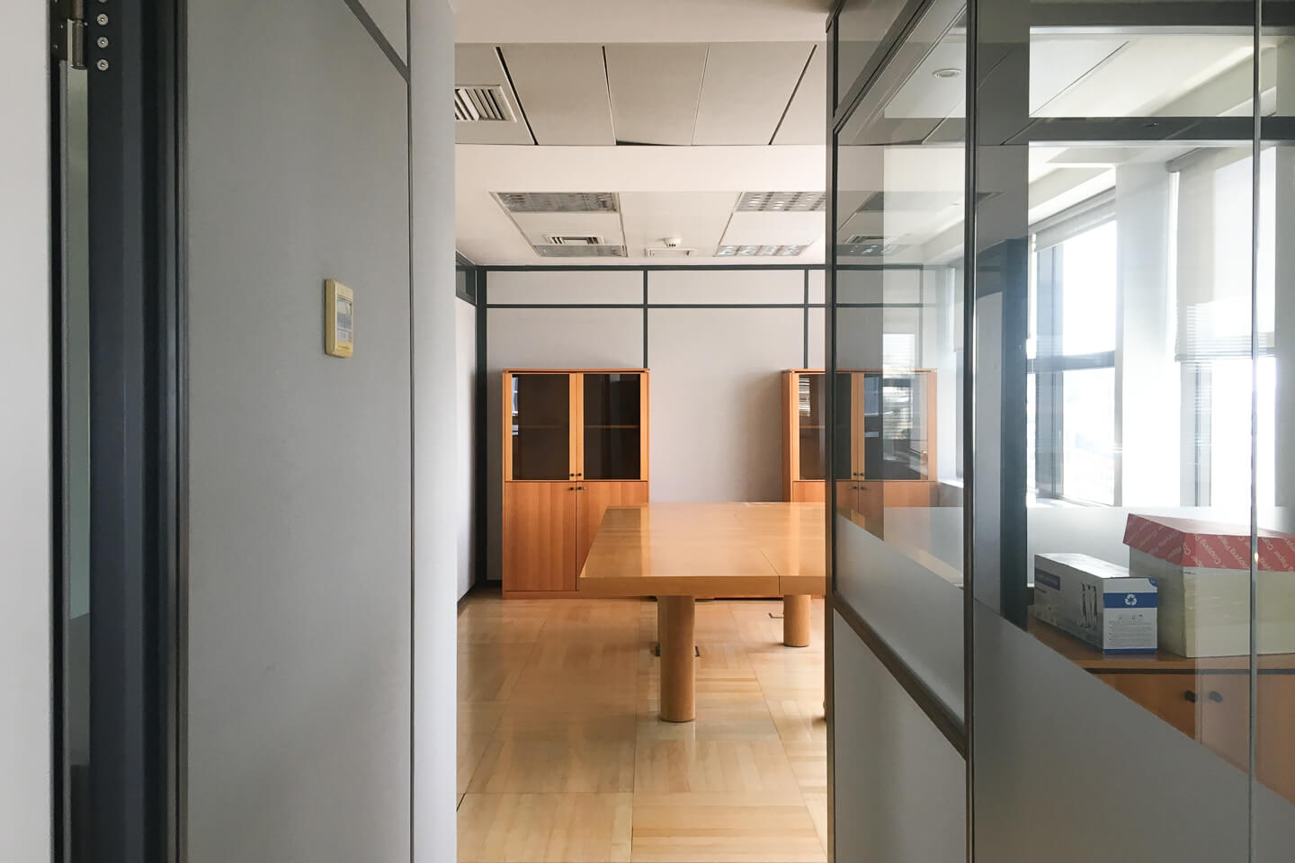 This office is located on the 4th floor of a professional building, in excellent condition. It is bright and has elevated floors, independent cooling, and heating, underfloor wiring. glass mobile office partitions and parking spaces.