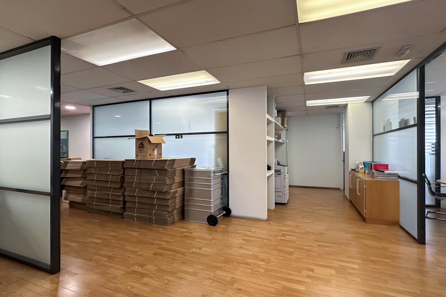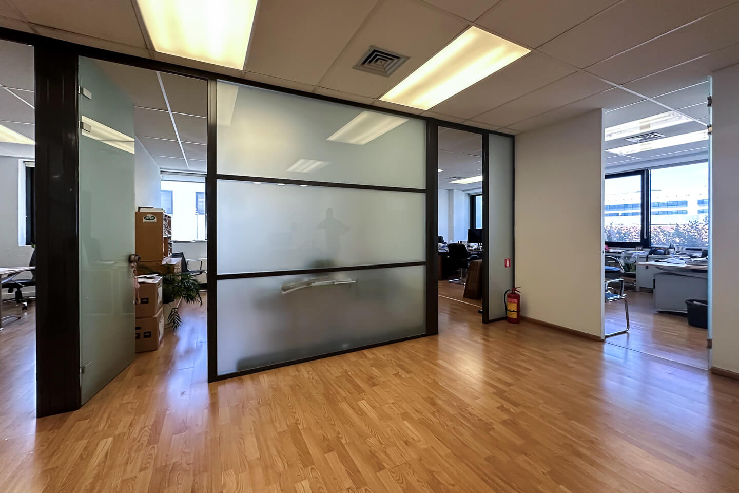 The offices are, are arranged on two floors, the 2nd and 3rd floor, in very good condition and consist of open planned and closed workplaces. In particular, they provide constructed office spaces, kitchenette, WC, meeting room, server room, and parking spaces. They are constructed with modern professional specifications such as a cooling-heating system, structured cabling, double glazing, movable partitions, etc.