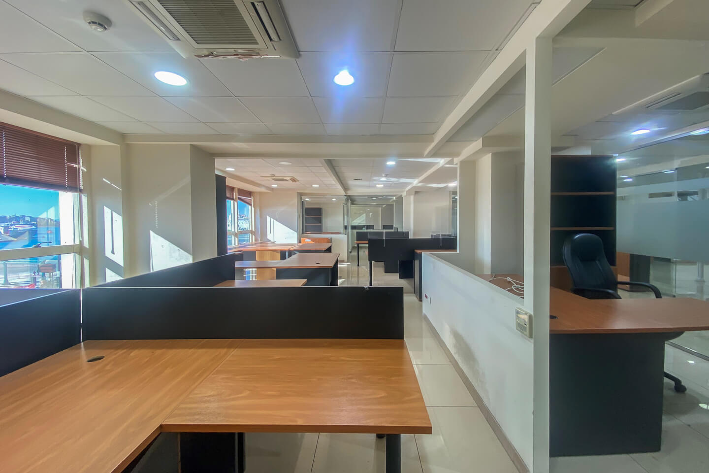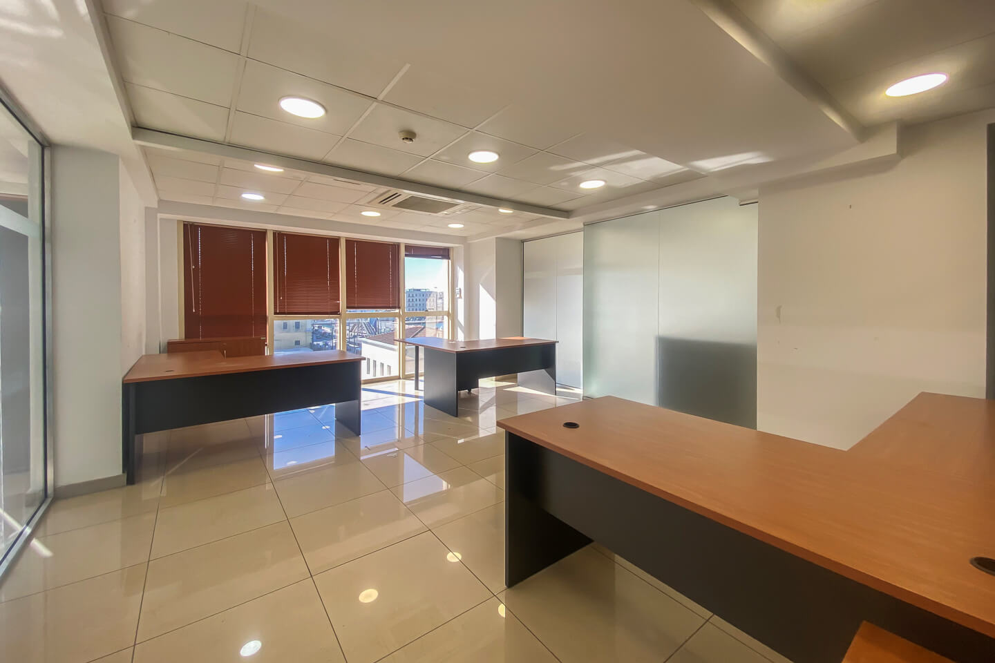 More specifically, the offices are luxuriously and very bright and consist of a reception, meeting room, open space offices with movable glass partitions, a kitchenette and 2 WCs on each floor. The false ceilings are of mineral fiber and the floors of tiles.