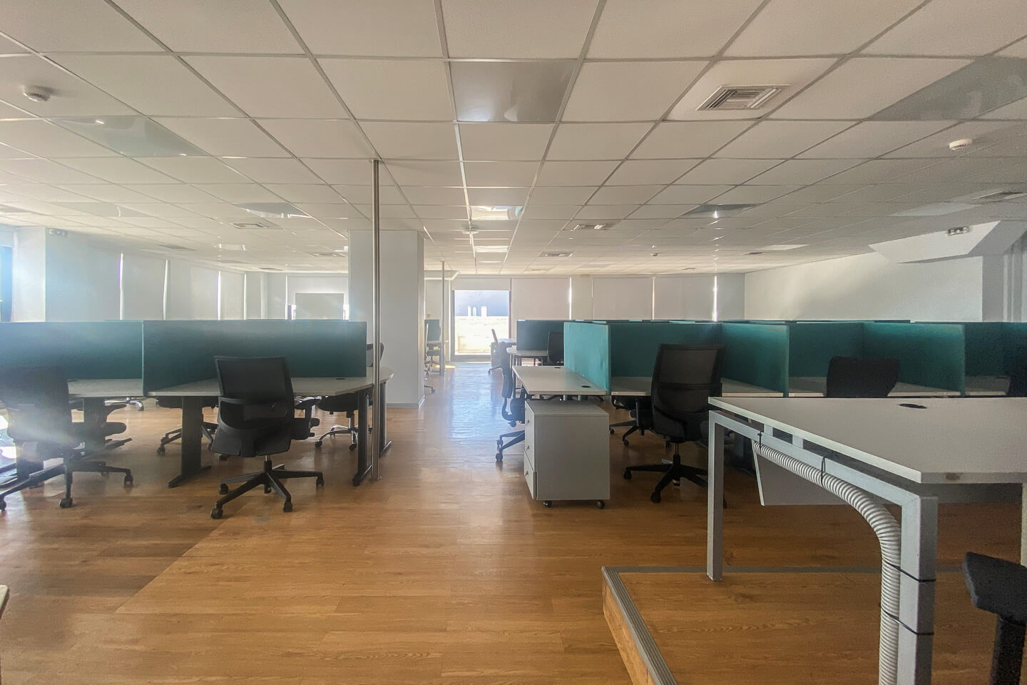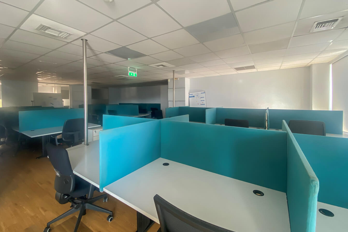 In more detail, the spaces are bright and made up of open space offices with 200 workplaces, a meeting room, a kitchenette and WC. The floors are laminate and the false ceiling is mineral fiber and has led panel lighting.