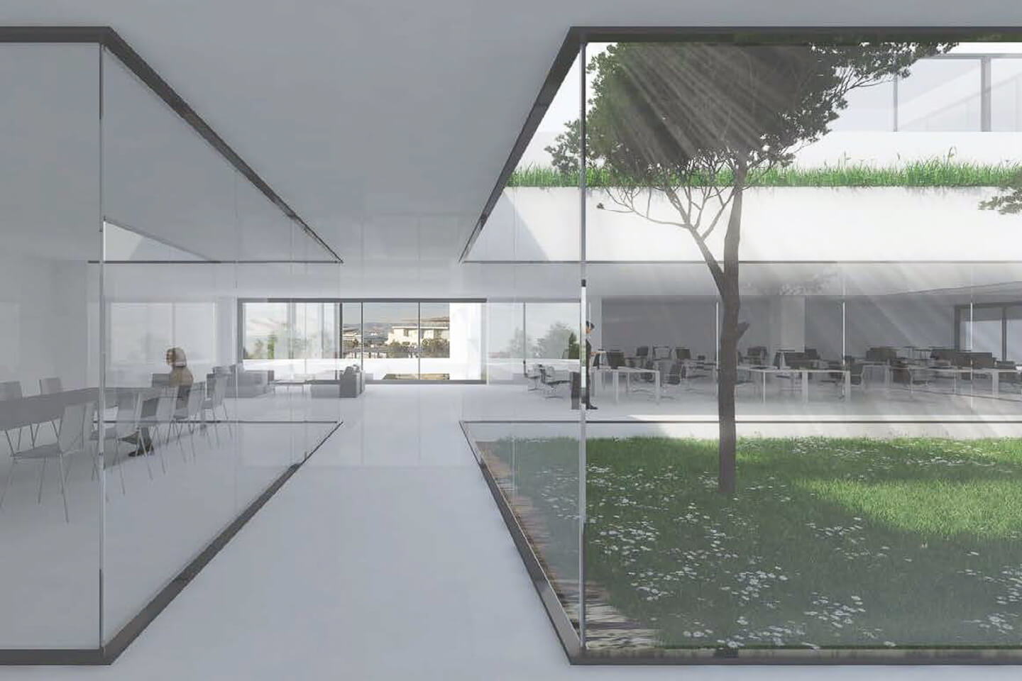 Specifically, a hot shell is delivered and includes an autonomous cooling-heating system, structured cabling, false ceiling and raised floors. In addition, there is a kitchenette and WC.