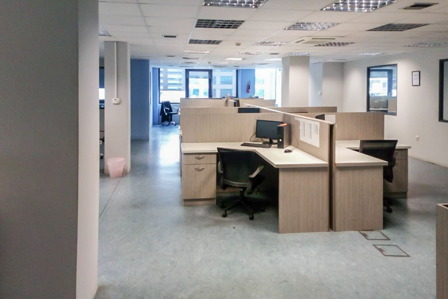 Specifically, the current office space is arranged over the 3rd floor including 6 closed offices, additional open planned work areas, server room, 5 WC, kitchen while it also disposes of synchronous professional facilities such as air conditioning, heat pump system installed in 2015, structured wiring, three-phase power, door phone with camera, fire detection system, etc.