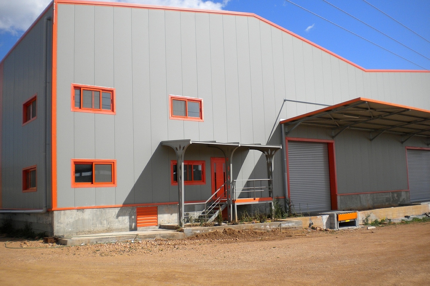 The property has industrial flooring, natural lighting, 6 electric doors, 6 ramps, and a sprinkler fire protection system. The offices are 200 square meters, on two levels. The surrounding space is paved and fenced.