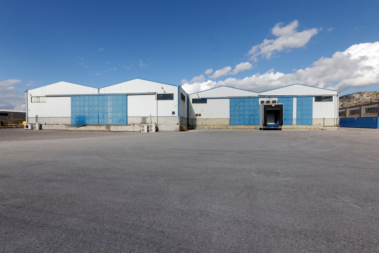 The warehouse is arranged over the ground floor with 6-7.5 meters in height, 1 loading ramp, 1 drive-in, industrial flooring, and office space of 100 square meters. The surrounding area is fenced and paved with asphalt with easy access.