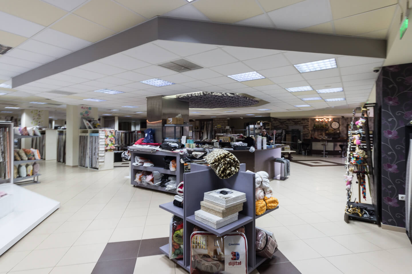 The commercial space is suitable for use as an exhibition space, a supermarket, offices, or a dining area.