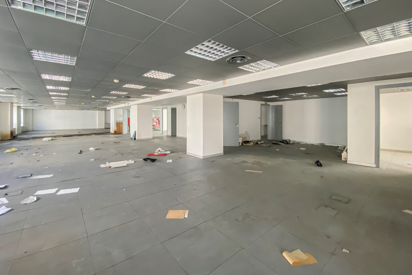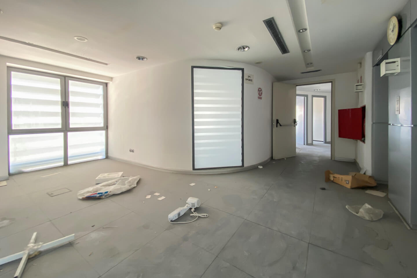 More specifically, the spaces include metal ceilings, plasterboard partitions, raised floors, kitchenette and WC on each floor. In addition, aluminum frames with double glazing are installed and there are 4 elevators for people and 1 car.
