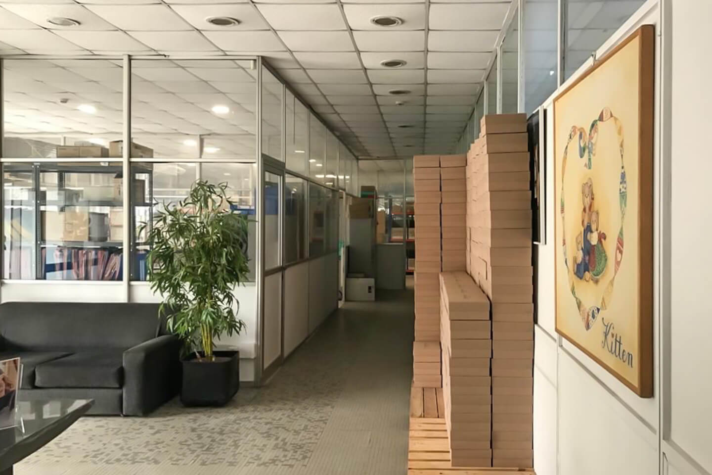 The property consists of a ground floor and has a height of 4 meters with good dimensions. It has an industrial floor, a mineral fiber false ceiling, as well as a fire safety system. A bright office space is also included.