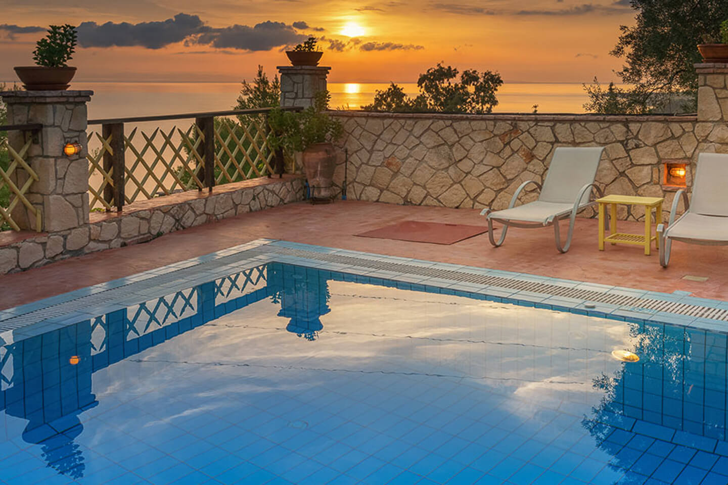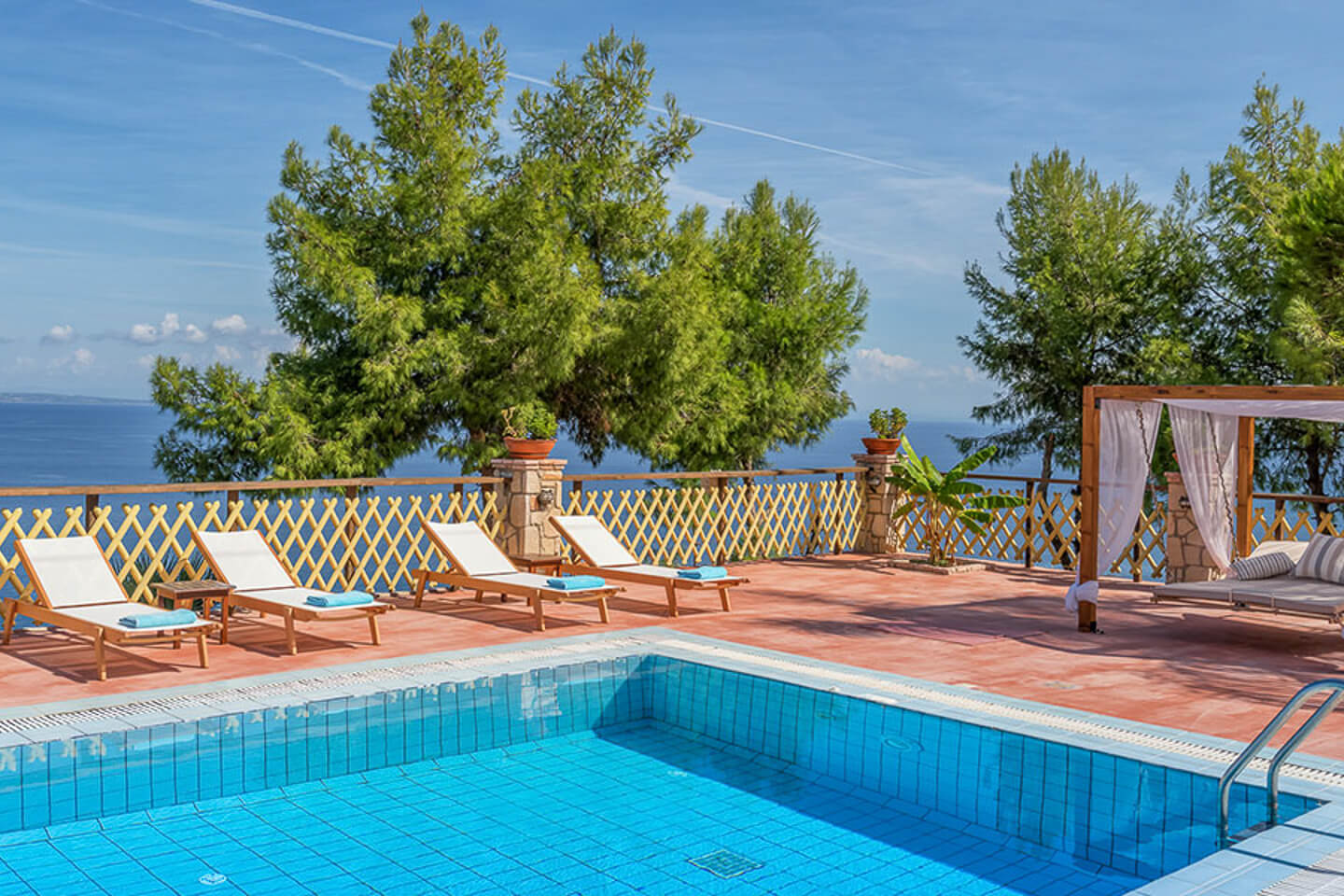 All the luxurious guesthouses are within walking distance of the beaches and have a magnificent view of the Ionian blue waters. They have outdoor private pools, showers, and BBQ as well as parking spaces.