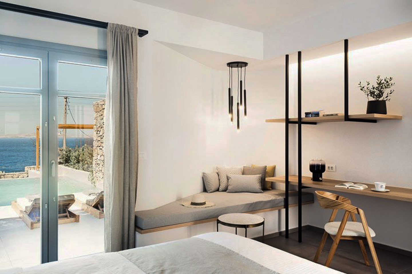 The hotel consists of 9 suites with sea view, 8 outdoor private pools and 2 jacuzzis, staff rooms, reception, parking spaces, outside area for all the meals, laundry facilityand separate office space. There is also expansion ability for 4 extra suites.