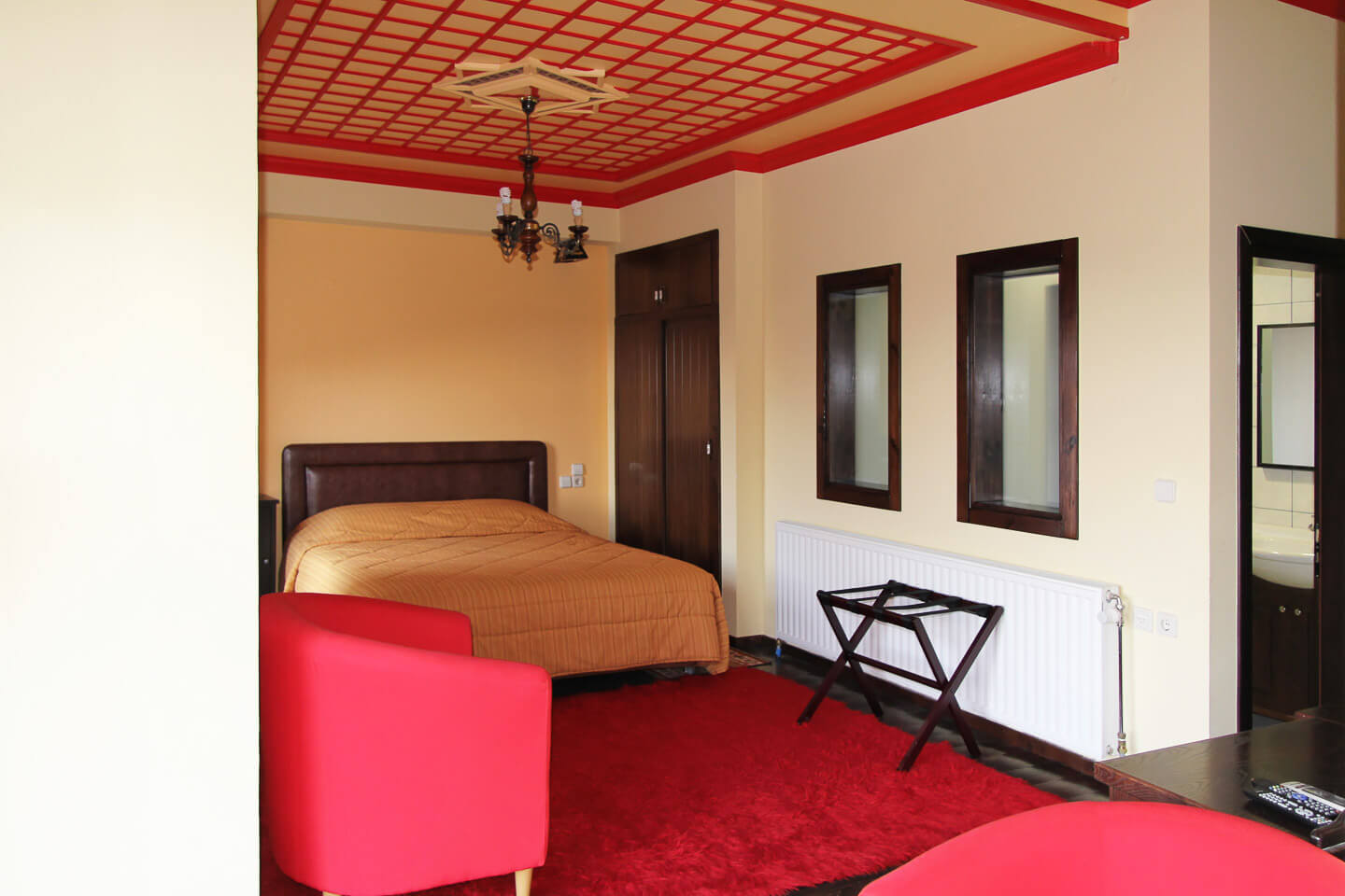 Moreover, it comprises a 1.200-square-meter garden with a lawn, trees, a stone throne, and open parking at the hotel entrance. It has, also, an unobstructed view from all the premises of the complex, due to its amphitheatrical position.