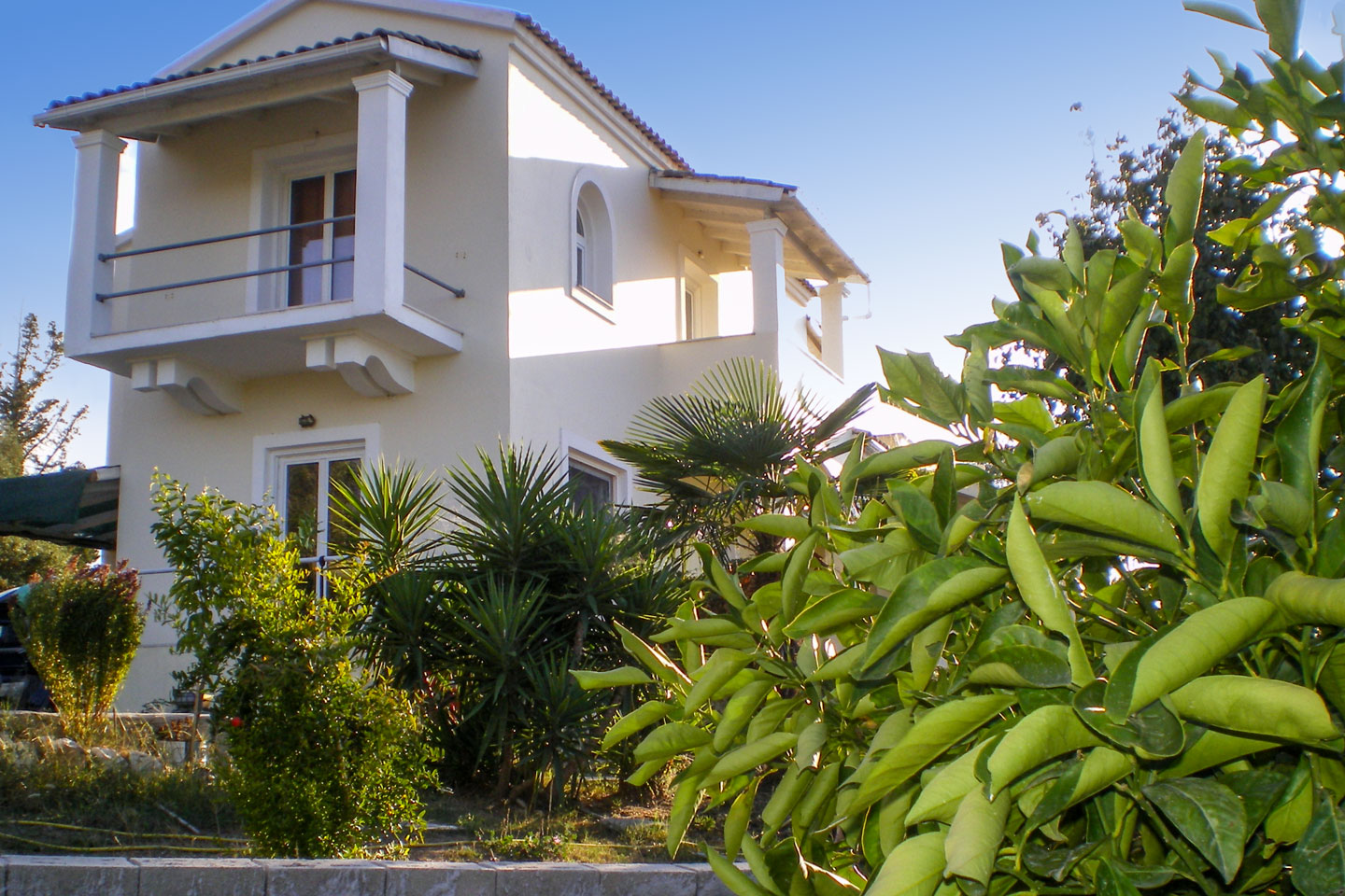 A synthesis of fruit trees in the lush landscape of 3.500 square meters, including apple trees, cherry trees, lemon trees, etc., and the magnificent view of the Ionian Sea will seduce you to a scene out of a classic film.
