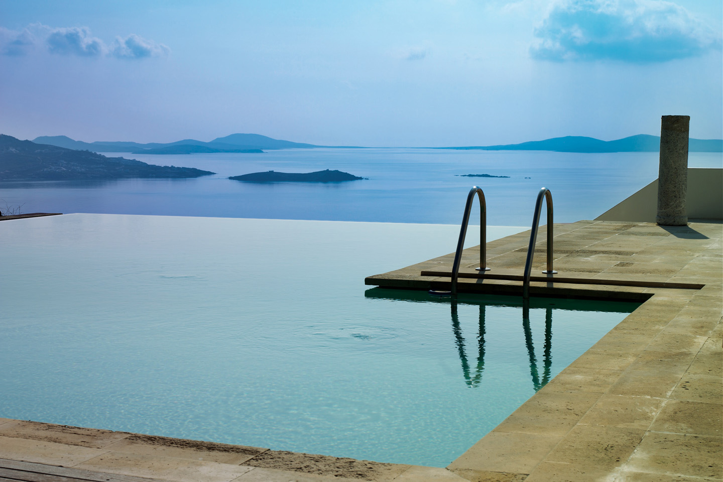 This spacious and house located on a unique hill side, with breathtaking view over the old harbor and its famous windmills, the new port of Tourlos and other nearby islands. It includes seven principal bedrooms, large indoor and outdoor reception areas and a swimming pool with view by the horizon.