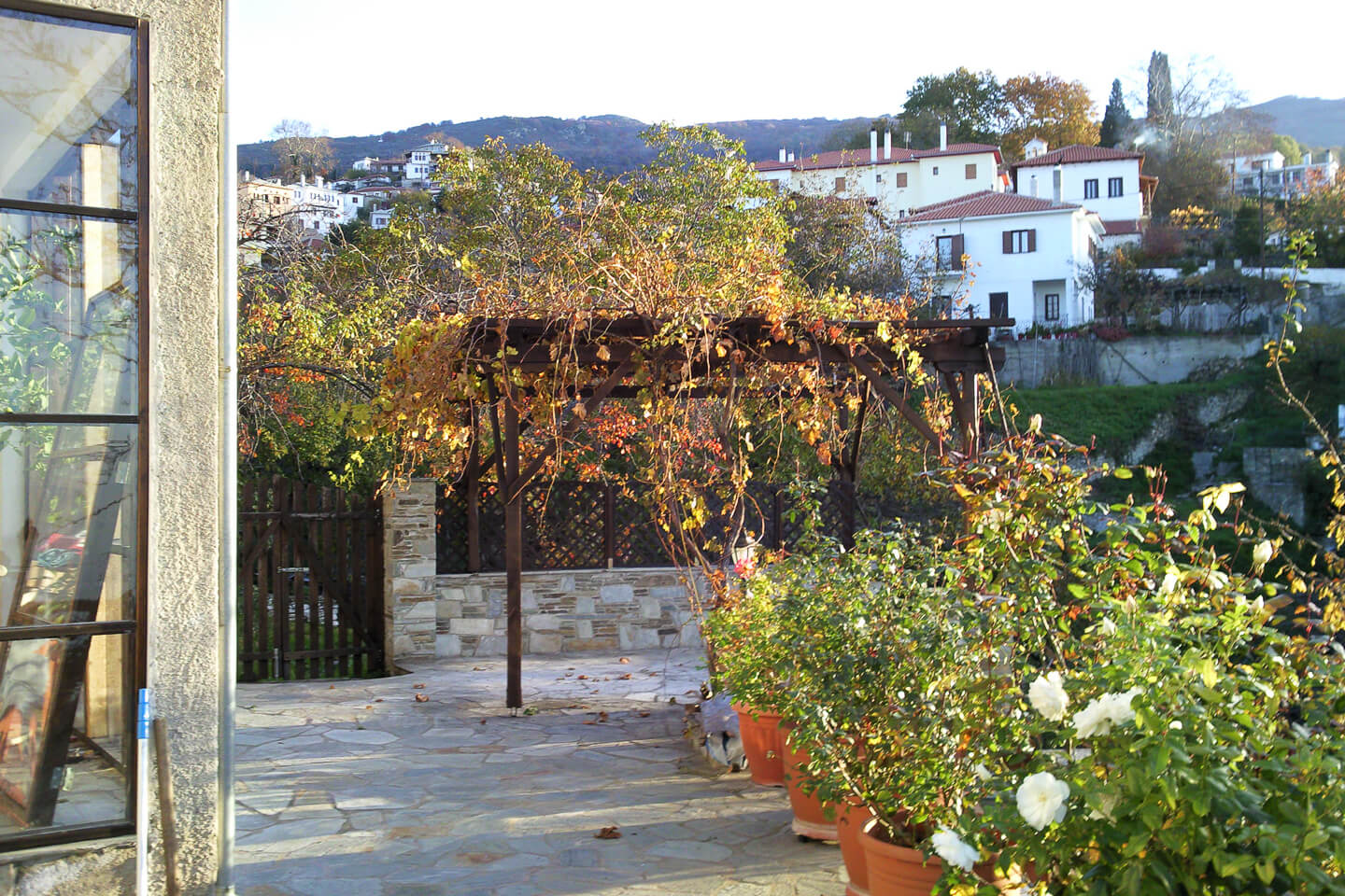 Portaria is the queen of Pelion, one of the most popular tourist resorts in Greece, combing the sea and mountains. Its distance from Volos is 12 km and from the ski center 13 km. It is situated at a height of 650 meters with an exceptional view of Pagassitikos bay. Portaria has a rich traditional culture with the Municipality organizing events, congresses, meetings, and festivals, in order to promote the cultural element.